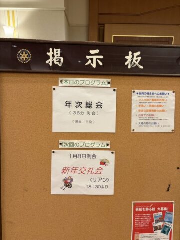 来年は1月8日の新年交礼会からの始動となります。年明けたらすぐです。ぜひ多くの会員でお客様をお迎えたいと思いますのでご参加よろしくお願い致します。