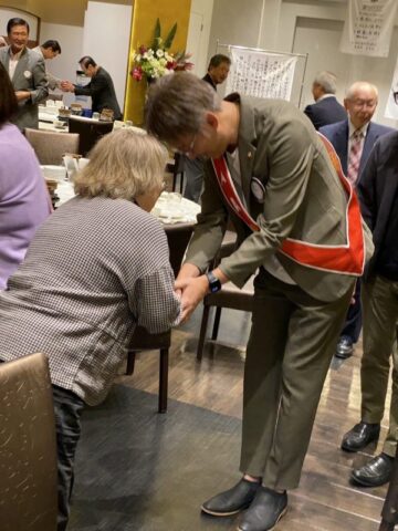 非常に温泉好きで丸駒に何度も来ているとのことで、(露天風呂が非常にいい、休暇村のお湯もいいんだよねとも言ってましたので)本当に好きなんだなと思いました。橘ガバナー補佐が会長・幹事会を丸駒でやることを検討しているので、丸駒でやるなら是非来たいとも言ってました。