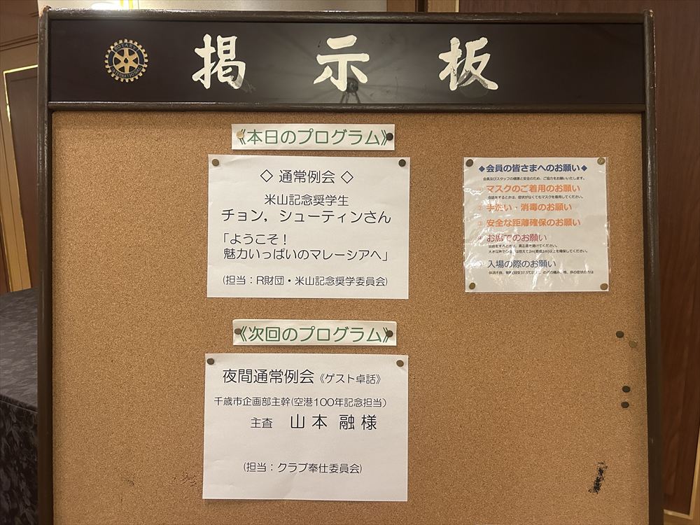 次回、例会は11月20日18:30より「夜間通常例会」となっております。昼の通常例会と同じく例会前の食事になりますので、お間違えのないようお願いいたします。