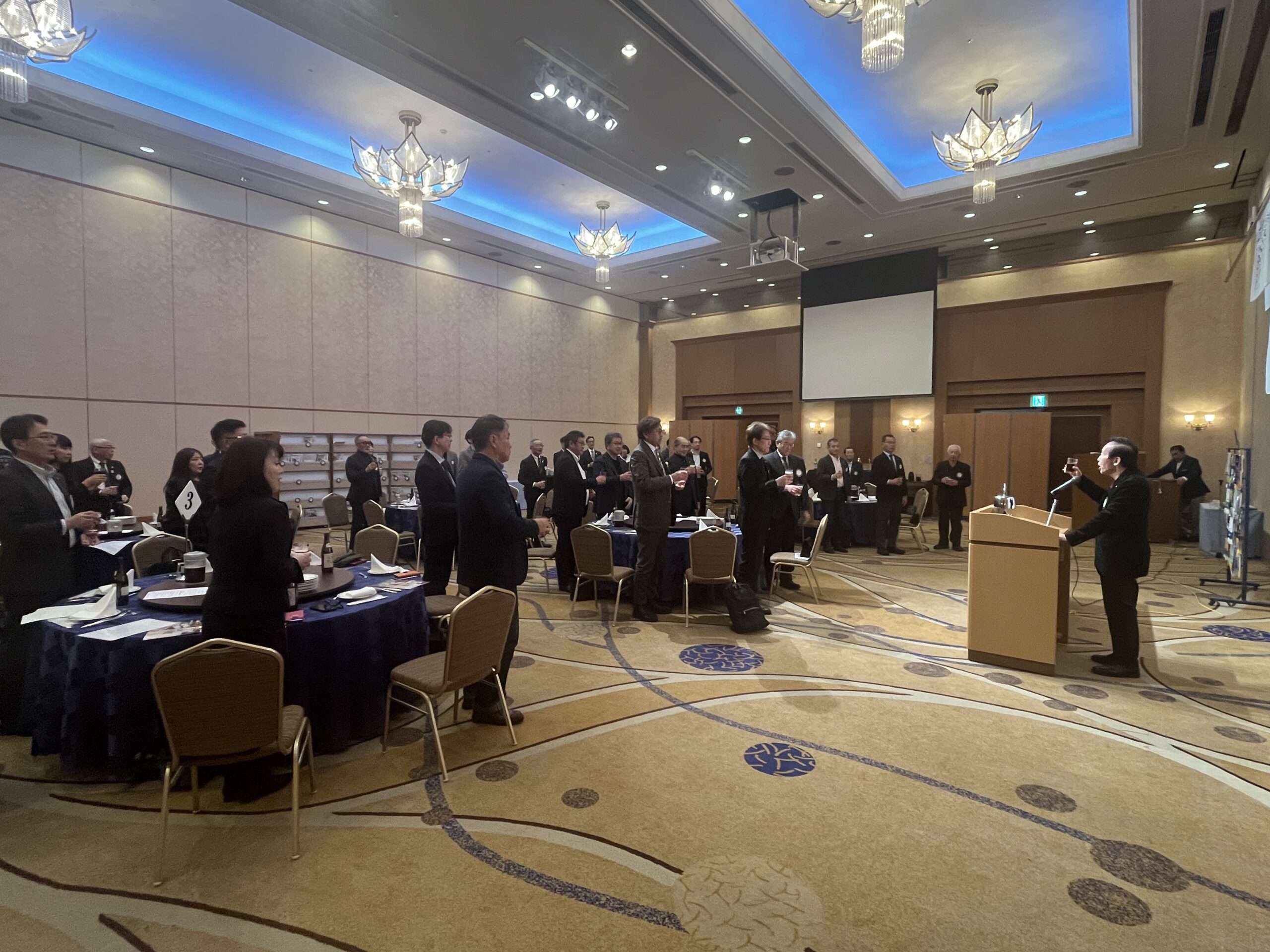 今日は親睦委員会担当の夜間例会ですが、懇親会の中で今村パスト会長の千歳市産業功労受賞のお祝いをしたいと思います。