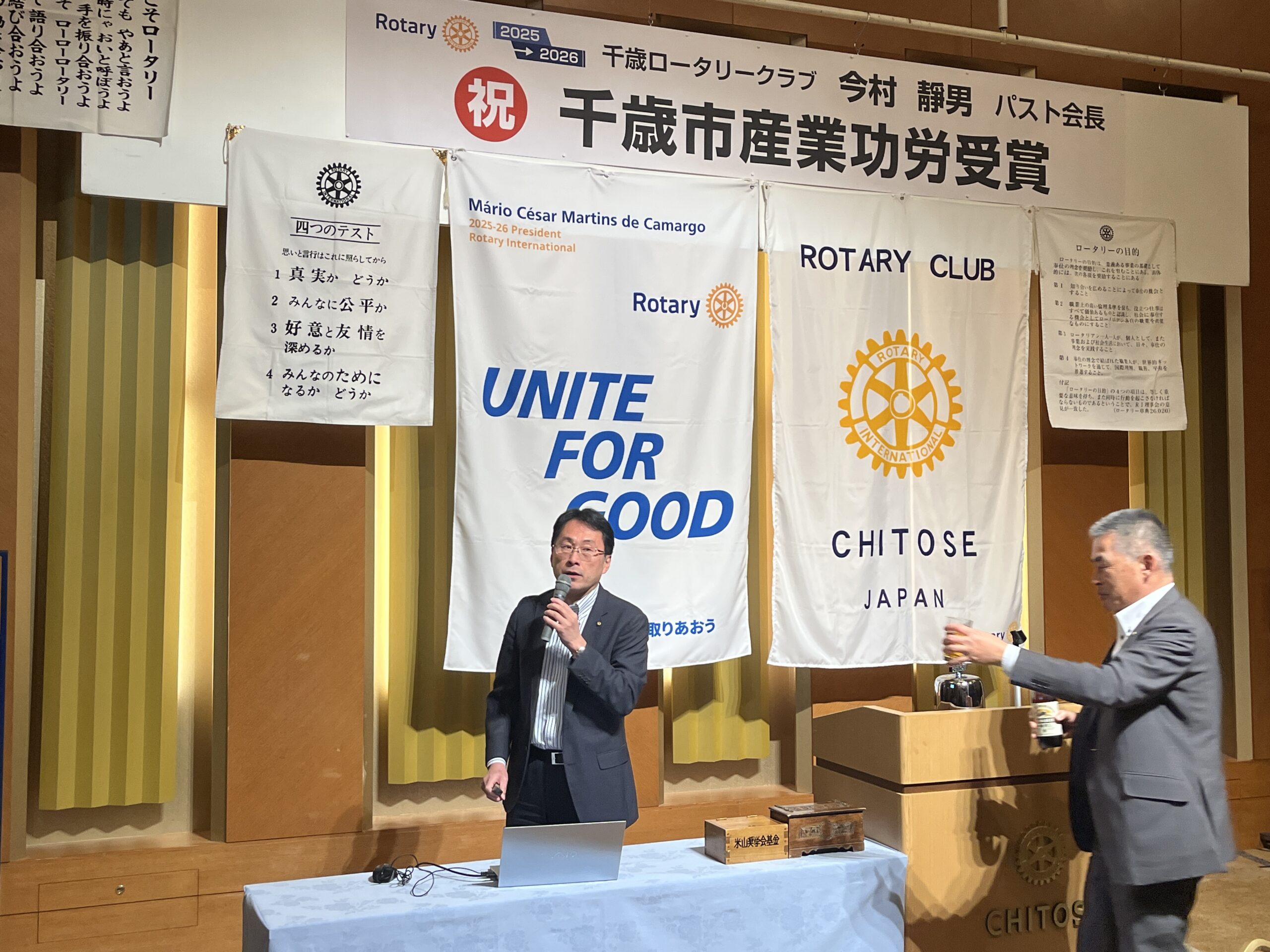 本当に長年にわたり千歳のためにご尽力されてきたことに敬意を表したいと思いますし、今後ともロータリークラブに対してもいろいろご意見いただければと思います。