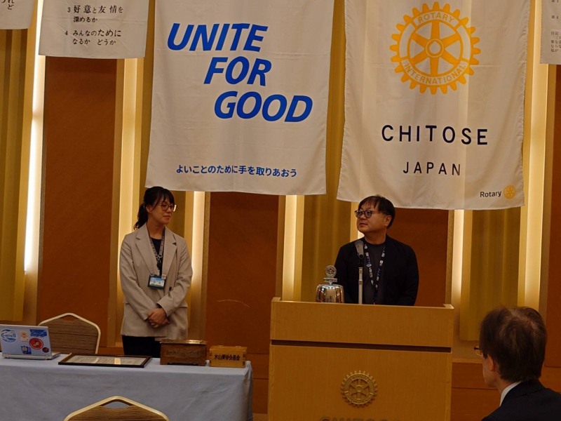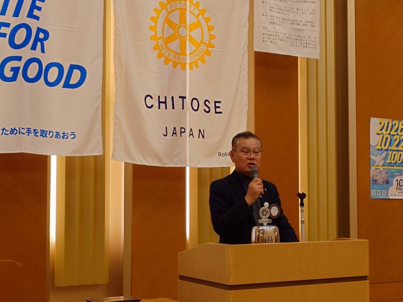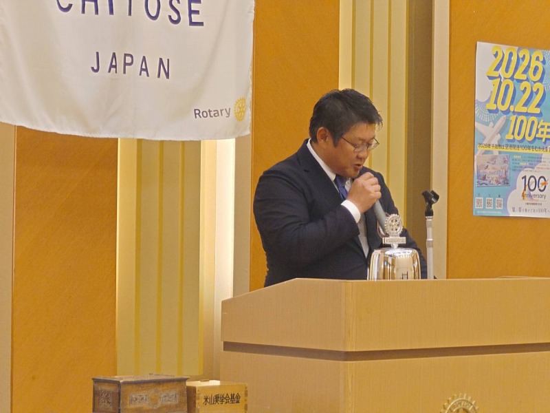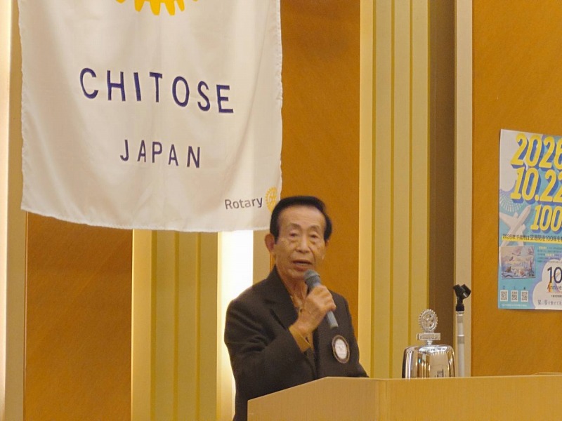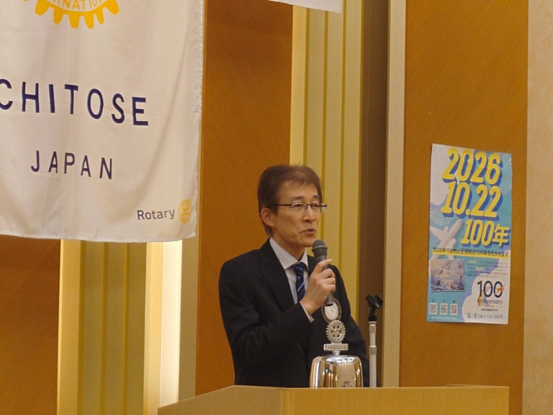 今回クラブ奉仕の意味合いとは少し違いますが、クラブとして参加したいと思っていますので、クラブ全体に関わることであり、いろいろな所で100周年に関する出前講座をされている千歳市からの要請もありましたので、クラブ内での情報共有を目的として今回卓話をお願いすることに致しました。